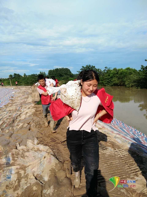 一個沙袋30斤,要背800米才能到堤壩,一天下來骨頭都累的散了架。想著護住堤壩才能護住鄉親們的生命財產,她告訴記者感到了青春的價值。安徽團省委供圖