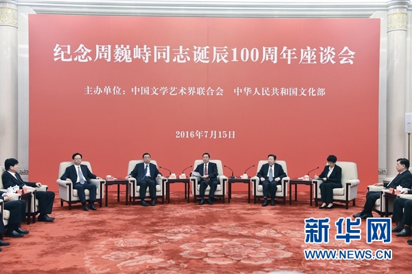 7月15日,紀(jì)念周巍峙同志誕辰100周年座談會(huì)在北京舉行。中共中央政治局委員、中央書記處書記、中宣部部長(zhǎng)劉奇葆出席座談會(huì)并講話。 新華社記者 高潔 攝