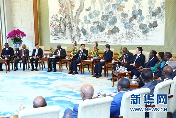 7月28日,國家副主席李源潮在北京集體會見出席中非合作論壇約翰內斯堡峰會成果落實協調人會議的非方代表團團長。 新華社記者 丁海濤 攝