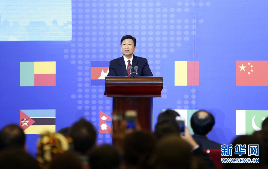 ??? 7月28日,首屆亞非青年聯歡節在北京人民大會堂開幕,國家副主席李源潮出席并致辭。新華社記者丁林攝