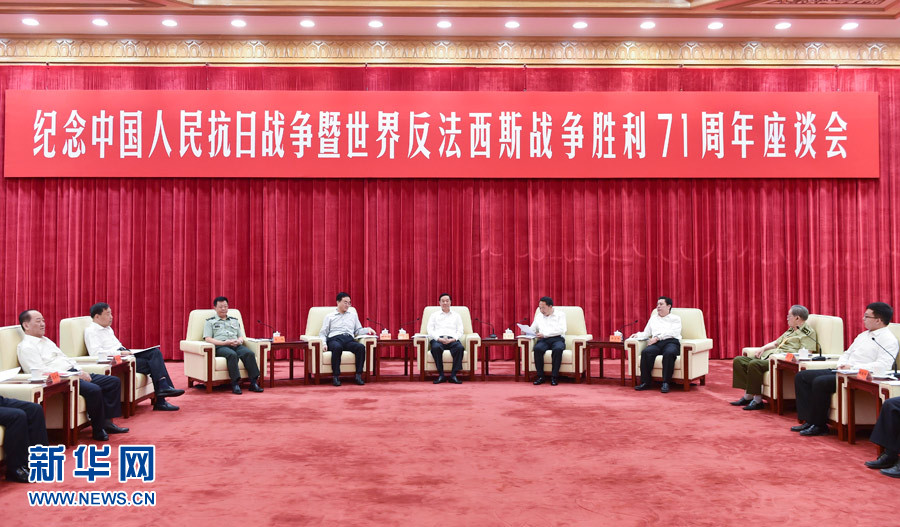 ?? 9月2日,紀念中國人民抗日戰爭暨世界反法西斯戰爭勝利71周年座談會在北京舉行,中共中央政治局委員、中央書記處書記、中宣部部長劉奇葆出席。新華社記者高潔攝