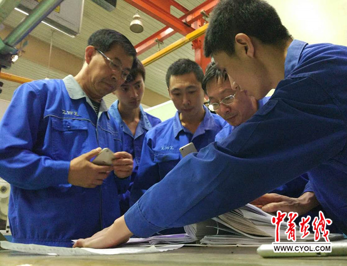 李書(shū)乾等人正在仔細(xì)翻看設(shè)備圖紙