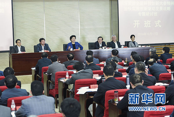 10月17日,中央組織部、中央黨校、科技部聯(lián)合舉辦的省部級(jí)干部“學(xué)習(xí)貫徹全國(guó)科技創(chuàng)新大會(huì)精神加快實(shí)施創(chuàng)新驅(qū)動(dòng)發(fā)展戰(zhàn)略”專題研討班在北京開(kāi)班。中共中央政治局委員、國(guó)務(wù)院副總理劉延?xùn)|出席開(kāi)班式并講話。新華社記者 張領(lǐng) 攝