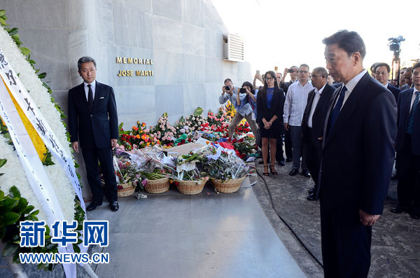 ??? 11月29日,在古巴首都哈瓦那,中共中央總書記、國家主席習近平特使國家副主席李源潮在何塞·馬蒂紀念館代習近平主席向菲德爾·卡斯特羅敬獻花圈。新華社發(華金·埃爾南德斯攝)