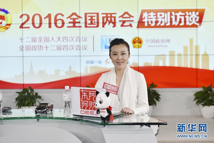 2016年3月12日,全國人大代表、正邦集團(tuán)董事局主席、總裁林印孫做客新華網(wǎng)兩會(huì)訪談直播間。圖為新華網(wǎng)主持人張姣。新華網(wǎng) 郭小天 攝