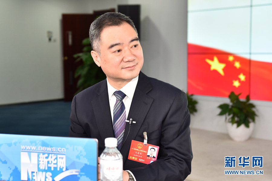 3月12日,全國人大代表,運(yùn)城市市長王清憲做客新華網(wǎng)2016全國兩會(huì)特別訪談,與新華網(wǎng)網(wǎng)友在線交流。圖為王清憲在訪談現(xiàn)場。新華網(wǎng) 付宇鵬 攝