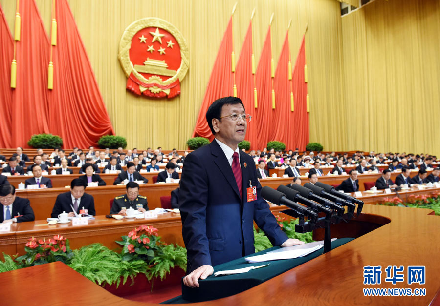 3月13日,十二屆全國人大四次會議在北京人民大會堂舉行第三次全體會議。最高人民檢察院檢察長曹建明作最高人民檢察院工作報告。 新華社記者 饒愛民 攝