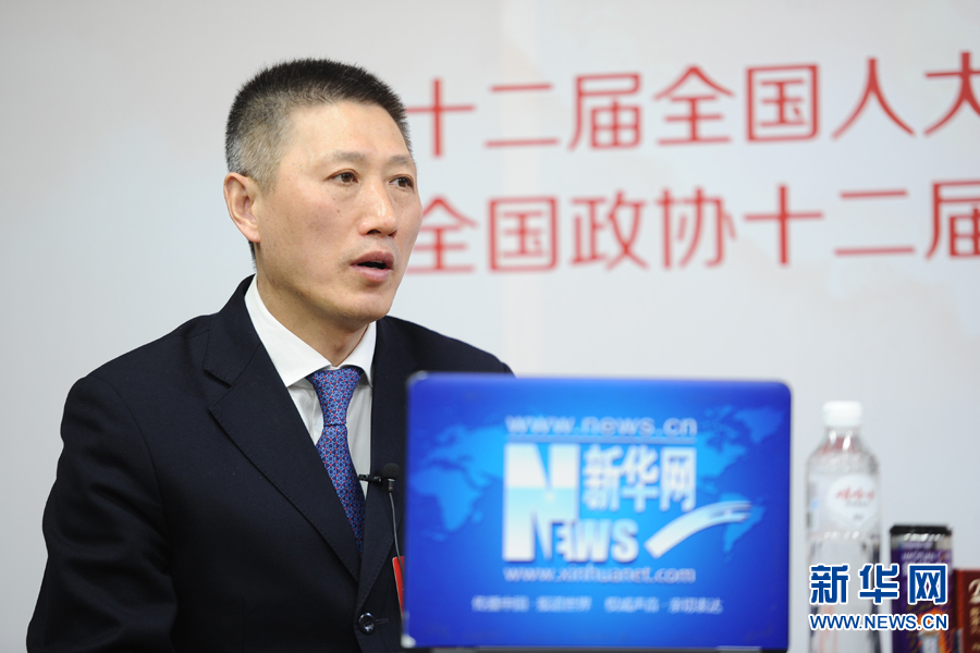??? 2016年3月13日,全國人大代表,煙臺張裕葡萄釀酒股份有限公司總經(jīng)理周洪江做客新華網(wǎng)兩會訪談。圖為周洪江在訪談現(xiàn)場。新華網(wǎng) 盧志佳 攝
