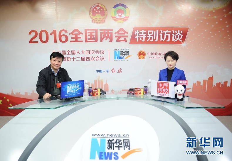 2016年3月14日,全國政協委員,天津達仁堂京萬紅藥業有限公司總經理劉文偉做客新華網2016全國兩會特別訪談,與新華網網友在線交流。圖為劉文偉在訪談現場。新華網 賈海元 攝