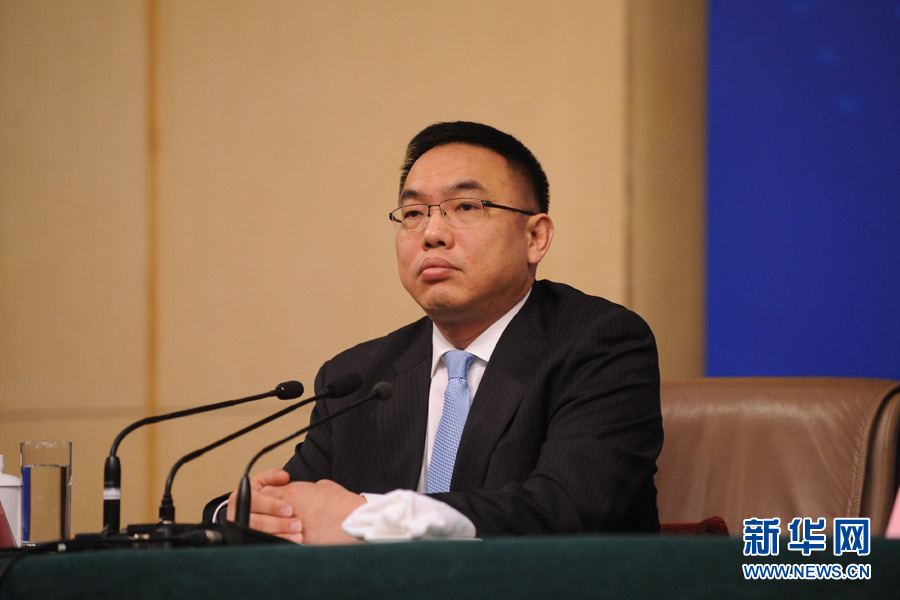 十二屆全國人大四次會議新聞中心于3月14日(星期一)10時在梅地亞中心多功能廳舉行記者會,邀請交通運輸部部長楊傳堂、交通運輸部運輸服務司司長劉小明、北京交通發展研究中心主任郭繼孚就“深化出租汽車改革與發展”的相關問題回答中外記者的提問。圖為主持人曲衛國。新華網/中國政府網 陳杰 攝