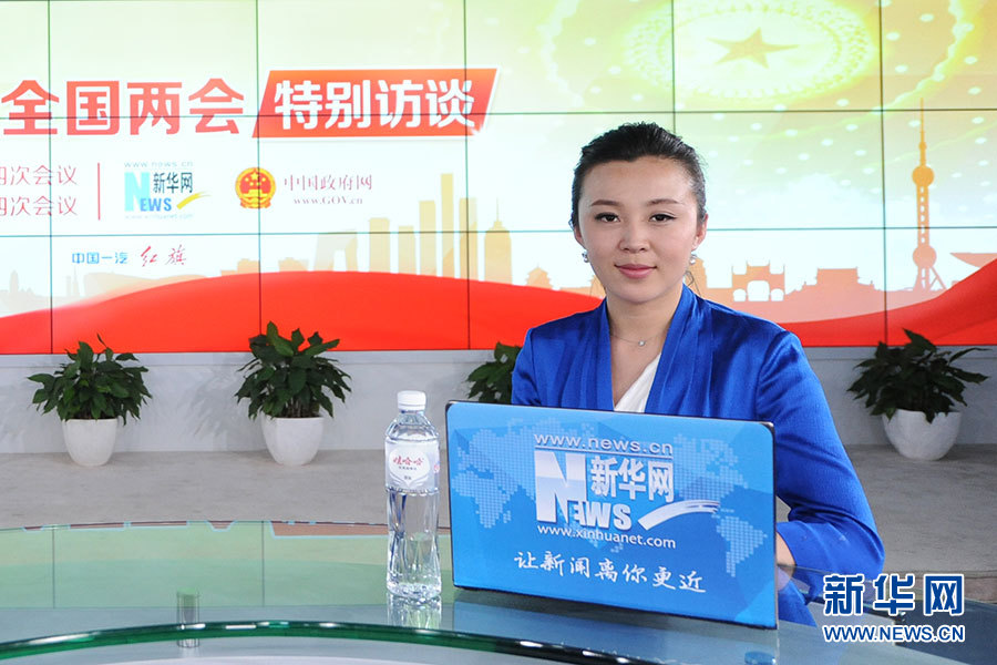 2016年3月14日,最高人民檢察院黨組副書記、常務副檢察長胡澤君做客新華網兩會訪談直播間。圖為主持人張姣。新華網?賈振 攝