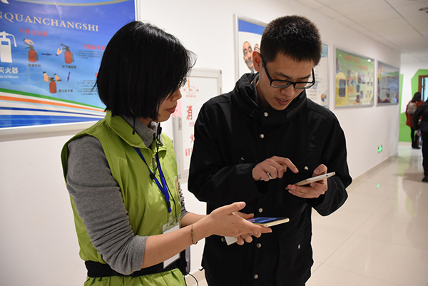 在鯤鵬青少年事務服務中心,中國青年網記者曾繁華(左二)與志愿者深度交流。中國網信網 陳舞陽 攝
