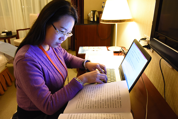 中國西藏網記者蘇文彥在研究福建省扶貧開發工作相關資料。中國網信網 陳舞陽 攝