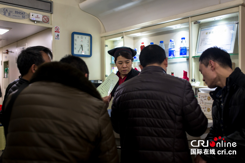 等列車行駛一段時間后,陸續有旅客來到餐車點餐。