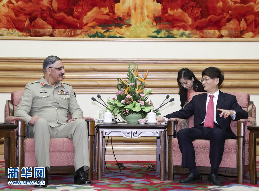 6月16日,中共中央政治局委員、中央政法委書記孟建柱在北京中南海會見巴基斯坦參謀長聯(lián)席會議主席祖拜爾。 新華社記者 丁林 攝