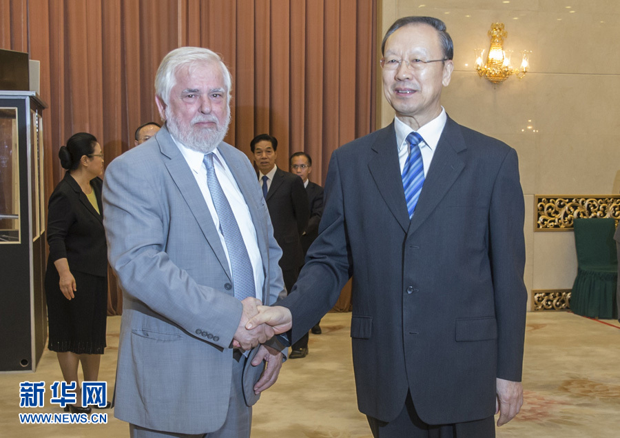 6月28日,中共中央書(shū)記處書(shū)記、全國(guó)政協(xié)副主席、中國(guó)經(jīng)濟(jì)社會(huì)理事會(huì)主席杜青林在北京會(huì)見(jiàn)歐盟經(jīng)濟(jì)社會(huì)委員會(huì)主席達(dá)西斯。 新華社記者崔新鈺 攝