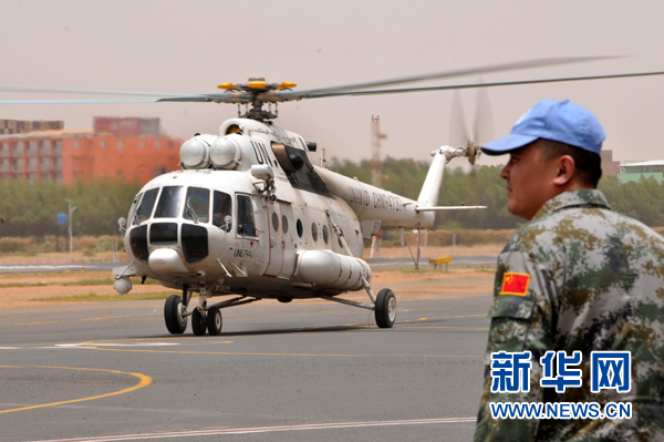 ?。吩拢常比?,中國首批維和直升機分隊在蘇丹喀土穆國際機場成功首飛。