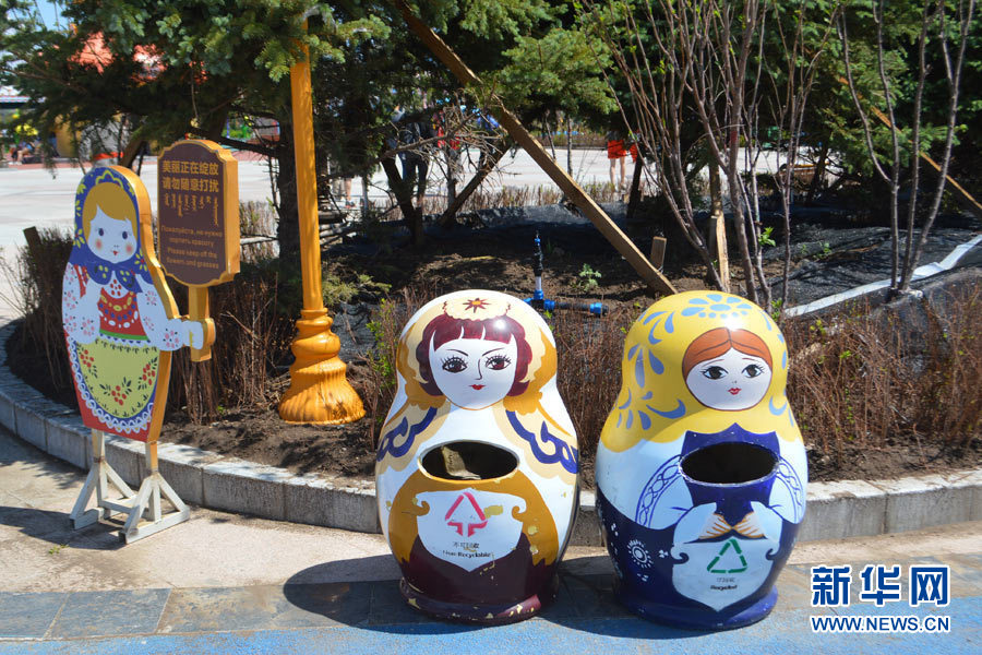 滿洲里市套娃景區,連垃圾箱也是套娃模樣(6月23日)。新華網記者 張敏彥 攝