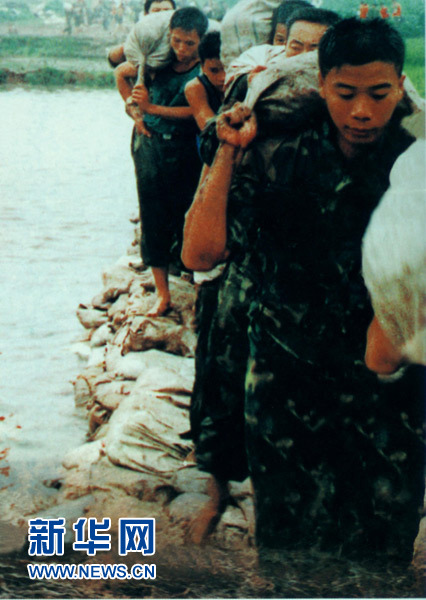 李向群在抗洪搶險(xiǎn)一線(xiàn)(資料圖片)。新華社發(fā)