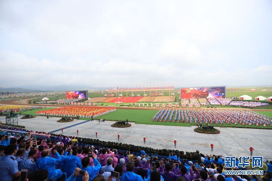 8月8日,內蒙古自治區成立70周年慶祝大會在呼和塔拉內蒙古少數民族群眾文化體育運動中心舉行。圖為群眾行進表演。新華網記者 陳杰 攝