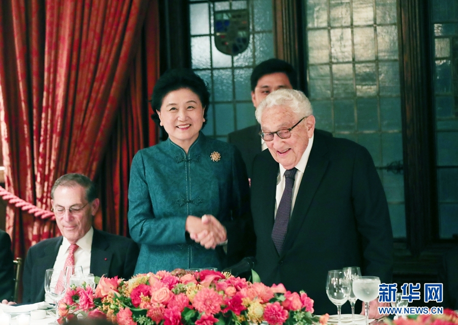 9月25日晚,中國國務(wù)院副總理劉延?xùn)|在美國紐約應(yīng)約出席基辛格博士為其舉行的晚宴。賓主雙方在輕松熱烈的氣氛中就促進中美友好交流等問題深入交換了意見。這是劉延?xùn)|在晚宴上與基辛格握手。新華社記者 王迎 攝