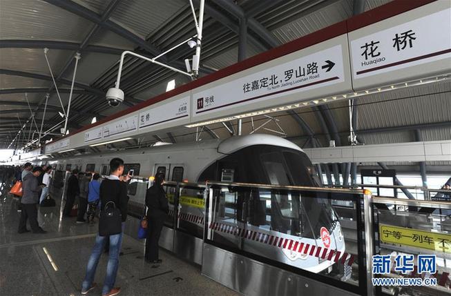 2013年10月16日,上海地鐵11號(hào)線北段延伸工程花橋段(上海安亭站至江蘇昆山花橋站)開(kāi)通試運(yùn)營(yíng)。這是乘客在江蘇昆山花橋站站臺(tái)候車。新華社記者 劉巍巍 攝