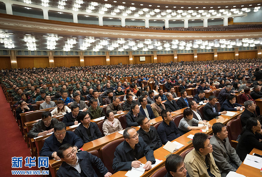 中央宣傳部、中央直屬機關工委、中央國家機關工委、教育部、中央軍委政治工作部、中共北京市委在北京人民大會堂舉辦學習貫徹黨的十九大精神中央宣講團首場報告會(11月3日攝)。新華社記者 丁海濤 攝