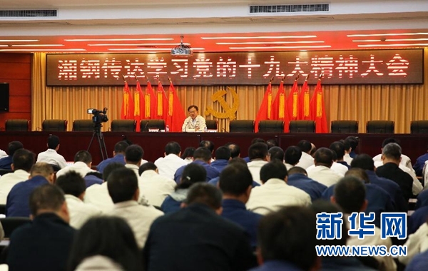 10月30日,王樹(shù)春向湖南華菱湘潭鋼鐵有限公司員工宣講黨的十九大精神。十九大代表、湖南華菱湘潭鋼鐵有限公司黨委書(shū)記王樹(shù)春從北京回到鋼廠,下車后直奔會(huì)議室,激動(dòng)地向等待在此的班子成員傳達(dá)十九大精神。對(duì)這個(gè)流著紅色血液、有著9693名黨員、剛剛擺脫生存困境的老鋼廠來(lái)說(shuō),十九大精神無(wú)疑帶來(lái)了新希望、吹響了新號(hào)角。新華社發(fā)