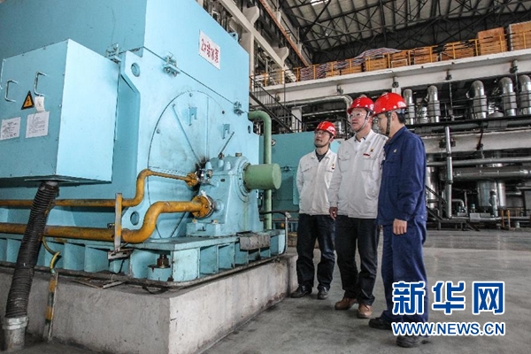 10月31日,王樹(shù)春(中)在湖南華菱湘潭鋼鐵有限公司135MW超高壓發(fā)電項(xiàng)目廠房中了解設(shè)備運(yùn)行狀況。十九大代表、湖南華菱湘潭鋼鐵有限公司黨委書(shū)記王樹(shù)春從北京回到鋼廠,下車后直奔會(huì)議室,激動(dòng)地向等待在此的班子成員傳達(dá)十九大精神。對(duì)這個(gè)流著紅色血液、有著9693名黨員、剛剛擺脫生存困境的老鋼廠來(lái)說(shuō),十九大精神無(wú)疑帶來(lái)了新希望、吹響了新號(hào)角。新華社記者 王天聰 攝
