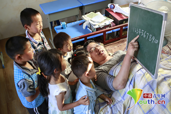 由于葉海濤的雙下肢關(guān)節(jié)僵直,沒有辦法筆直地坐著,他便躺在病床上,側(cè)著身子用小黑板給孩子們講解題目。可是這樣一來,躺的時間一旦久了,葉海濤的身體便會全都麻木,疼痛難忍。但他卻始終堅持著……最難熬的是夏季,他睡在板床上長時間保持同一個姿勢,全身都被汗水浸透了,額頭上黃豆般大小的汗珠不斷地冒出,滾落到板床上,床面已經(jīng)被浸濕。常人都難以忍受,更何況是患病在床的葉海濤呢?在這種異常難受的狀態(tài)下,葉海濤憑借自己驚人的毅力,克服困難,十八年如一日,堅持為孩子們輔導功課。這份教學工作,是繁雜的,須深入學習、不斷鉆研,研究教學思路。為了更好地勝任這份輔導任務,他經(jīng)常在空余時間閱讀有關(guān)教育方面的書籍。