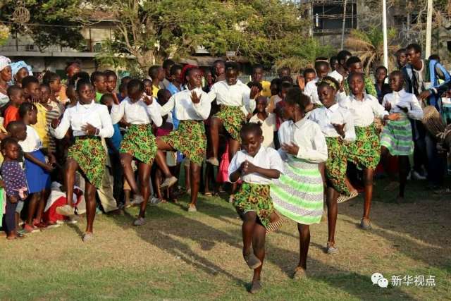 2016年4月30日,岡比亞學生團體在首都班珠爾建城200周年慶祝活動中表演舞蹈。新華社記者 王猛攝