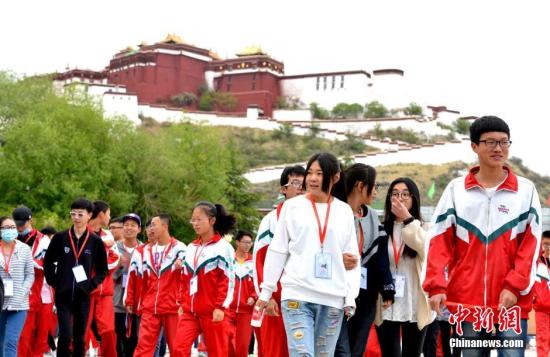 資料圖:西藏布達拉宮腳下的拉薩中學師生。中新社記者 李林 攝