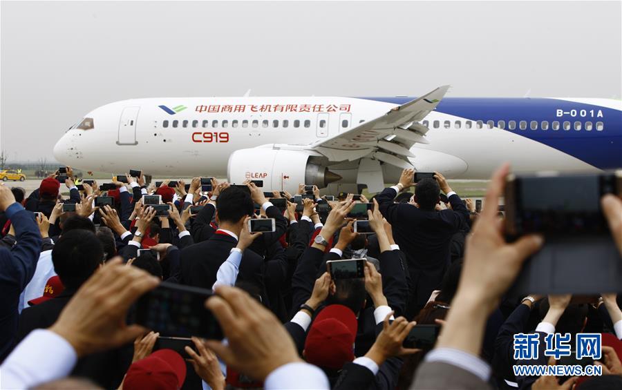 5月5日,我國具有完全自主知識產權、首款按照最新國際適航標準研制的干線民用飛機C919首飛成功。它的首飛意味著中國已躋身世界少數能夠自主制造大型客機國家之列。(新華社記者 方喆 攝)