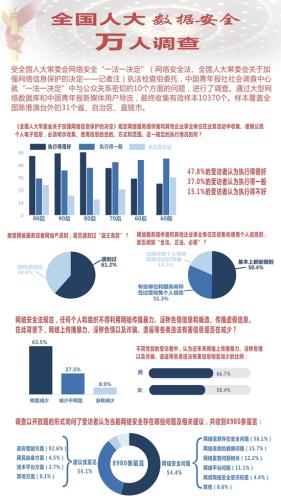 近日,受全國人大常委會網絡安全“一法一決定”(網絡安全法、《全國人大常委會關于加強網絡信息保護的決定》——編者注)執法檢查組委托,由中國青年報社社會調查中心負責執行的“全國人大數據安全萬人調查”結果出爐。