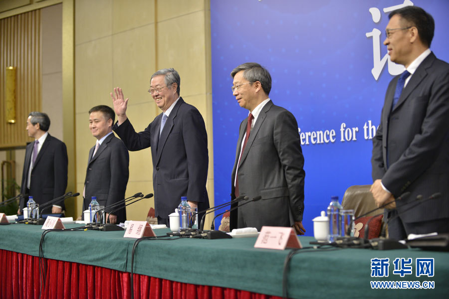 3月10日,十二屆全國人大五次會議新聞中心舉行記者會,邀請中國人民銀行行長周小川、副行長易綱、副行長兼國家外匯管理局局長潘功勝、副行長范一飛就“金融改革與發(fā)展”的相關(guān)問題回答中外記者的提問。圖為記者會現(xiàn)場。新華網(wǎng)/中國政府網(wǎng) 王健 攝