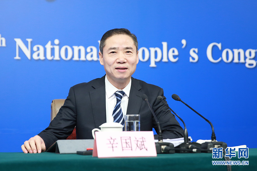 3月11日,十二屆全國人大五次會議新聞中心舉行記者會,邀請工業(yè)和信息化部部長苗圩、副部長辛國斌和總工程師、新聞發(fā)言人張峰就“推進(jìn)實(shí)施‘中國制造2025’”的相關(guān)問題回答中外記者的提問。圖為工業(yè)和信息化部副部長辛國斌。新華網(wǎng)/中國政府網(wǎng)?翟子赫 攝?
