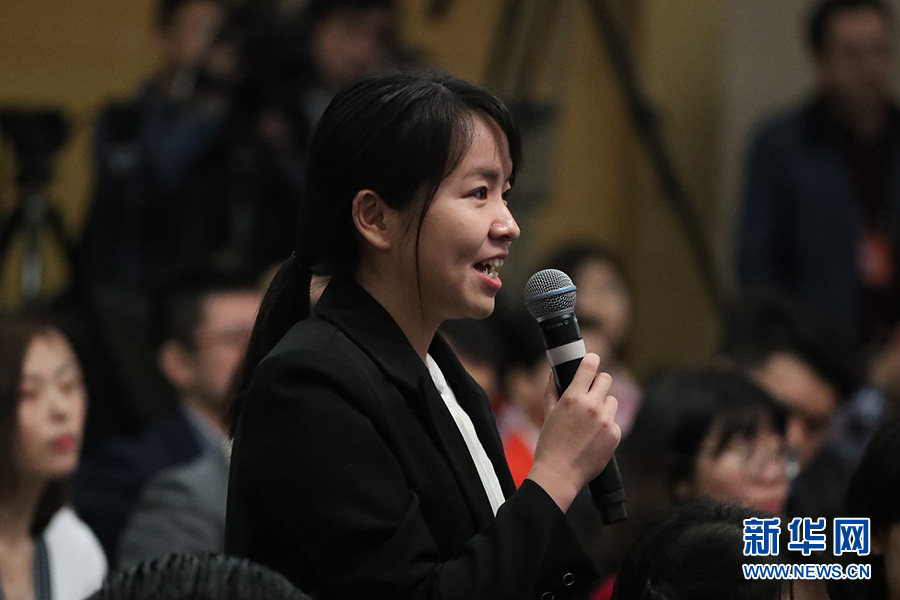 3月11日,十二屆全國人大五次會議新聞中心舉行記者會,邀請工業(yè)和信息化部部長苗圩、副部長辛國斌和總工程師、新聞發(fā)言人張峰就“推進實施‘中國制造2025’”的相關問題回答中外記者的提問。圖為中國日報記者提問。新華網/中國政府網 傅義洲 攝