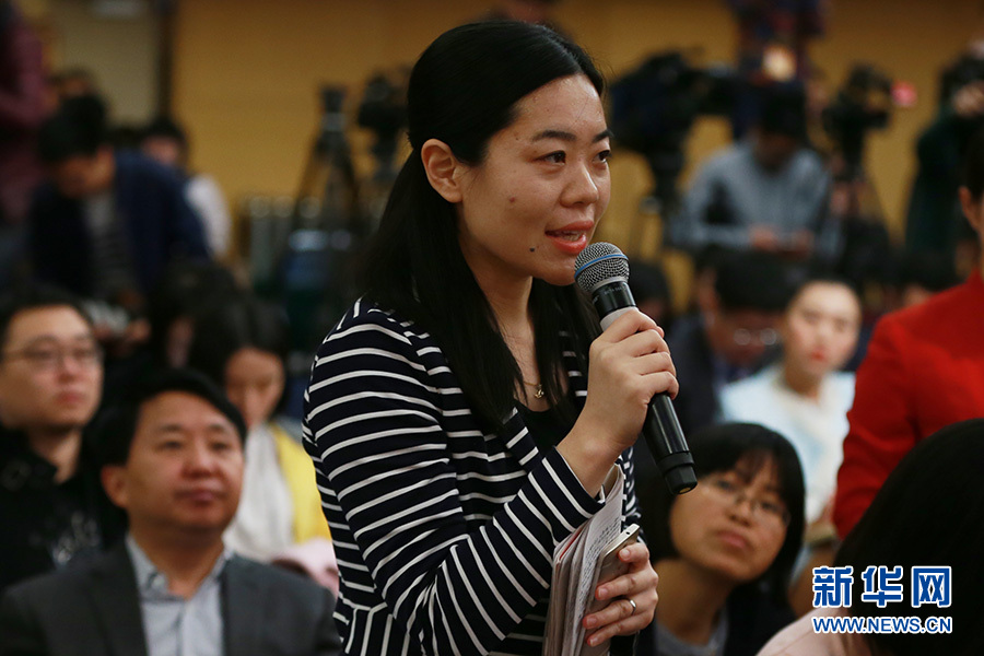 3月11日,十二屆全國人大五次會議新聞中心舉行記者會,邀請工業(yè)和信息化部部長苗圩、副部長辛國斌和總工程師、新聞發(fā)言人張峰就“推進(jìn)實施‘中國制造2025’”的相關(guān)問題回答中外記者的提問。圖為香港紫荊雜志記者提問。新華網(wǎng)/中國政府網(wǎng) 傅義洲 攝