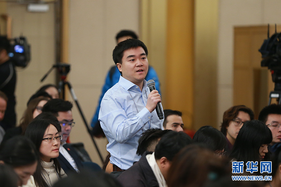 3月11日,十二屆全國人大五次會(huì)議新聞中心舉行記者會(huì),邀請(qǐng)工業(yè)和信息化部部長苗圩、副部長辛國斌和總工程師、新聞發(fā)言人張峰就“推進(jìn)實(shí)施‘中國制造2025’”的相關(guān)問題回答中外記者的提問。圖為中國國際廣播電臺(tái)記者提問。新華網(wǎng)/中國政府網(wǎng) 傅義洲 攝