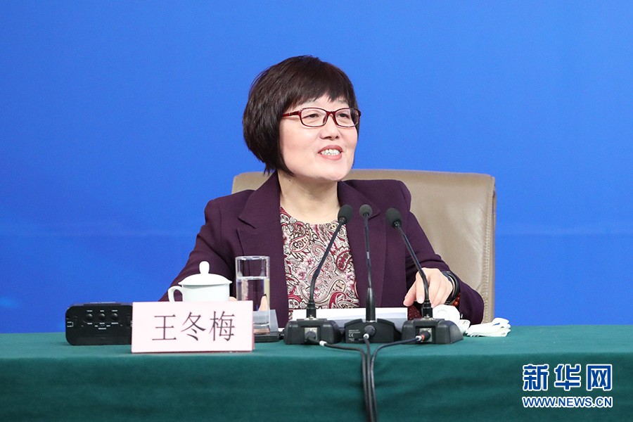 3月11日,十二屆全國人大五次會議新聞中心舉行記者會,邀請科技部部長萬鋼、秘書長徐建培就“2016年創(chuàng)新驅(qū)動發(fā)展戰(zhàn)略實施進展成效和2017年重點工作”的相關(guān)問題回答中外記者的提問。圖為記者會主持人王冬梅。新華網(wǎng)/中國政府網(wǎng)?傅義洲 攝
