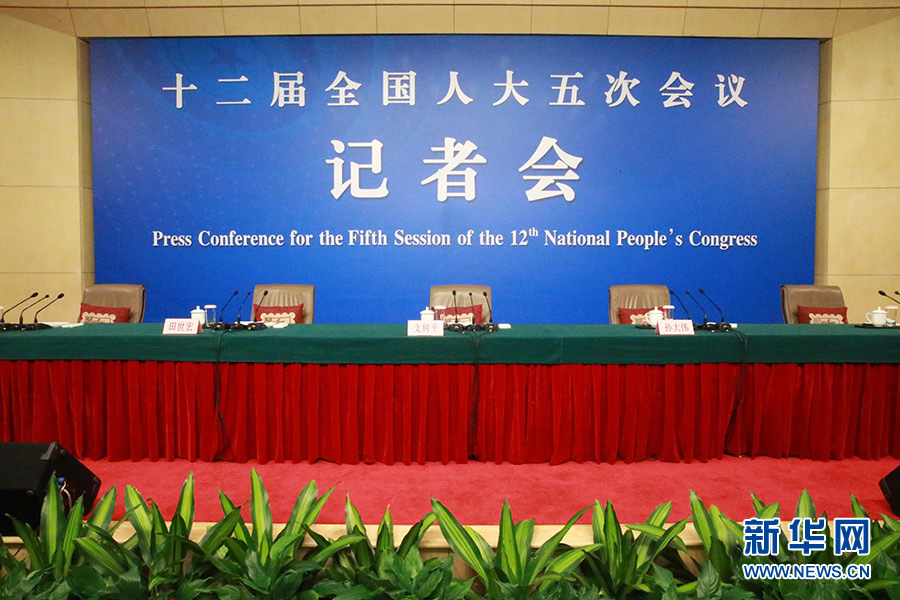 3月14日,十二屆全國人大五次會議新聞中心舉行記者會,邀請國家質檢總局局長支樹平、副局長兼國家認證認可監督管理委員會主任孫大偉、國家標準化管理委員會主任田世宏就“質量提升”的相關問題回答中外記者的提問。圖為記者會現場。新華網/中國政府網?傅義洲 攝