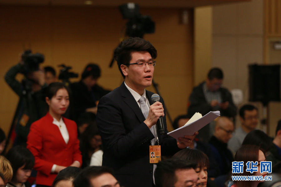 3月14日,十二屆全國人大五次會議新聞中心舉行記者會,邀請國家質(zhì)檢總局局長支樹平、副局長兼國家認(rèn)證認(rèn)可監(jiān)督管理委員會主任孫大偉、國家標(biāo)準(zhǔn)化管理委員會主任田世宏就“質(zhì)量提升”的相關(guān)問題回答中外記者的提問。圖為新華社記者提問。新華網(wǎng)/中國政府網(wǎng) 傅義洲 攝?