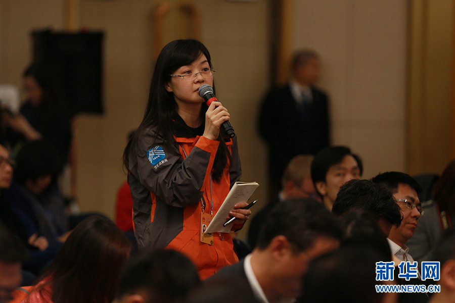 3月14日,十二屆全國人大五次會議新聞中心舉行記者會,邀請國家質檢總局局長支樹平、副局長兼國家認證認可監(jiān)督管理委員會主任孫大偉、國家標準化管理委員會主任田世宏就“質量提升”的相關問題回答中外記者的提問。圖為揚子晚報記者提問。新華網/中國政府網 傅義洲 攝?