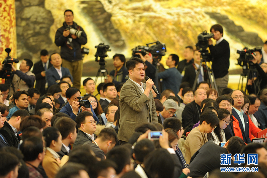 3月15日上午,國務院總理李克強在人民大會堂三樓金色大廳會見采訪十二屆全國人大五次會議的中外記者并回答記者提出的問題。圖為日本經濟新聞社記者提問。新華網/中國政府網 翟子赫 攝