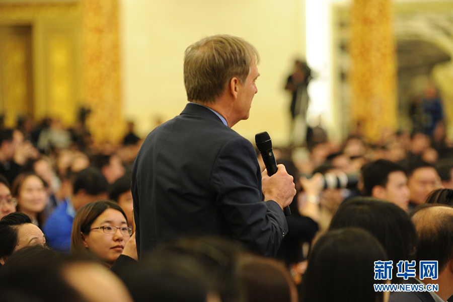 3月15日上午,國(guó)務(wù)院總理李克強(qiáng)在人民大會(huì)堂三樓金色大廳會(huì)見采訪十二屆全國(guó)人大五次會(huì)議的中外記者并回答記者提出的問題。圖為彭博社記者提問。新華網(wǎng)/中國(guó)政府網(wǎng) 翟子赫 攝?