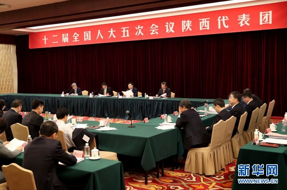 3月14日,十二屆全國(guó)人大五次會(huì)議陜西代表團(tuán)全體會(huì)議向媒體開放。新華網(wǎng)發(fā)(王超 攝)