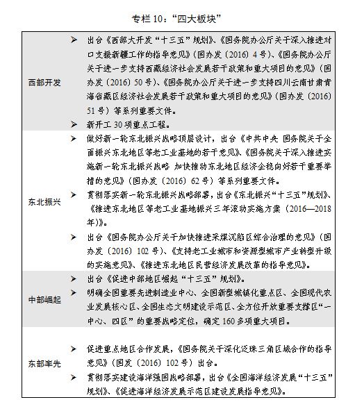 二是區域發展總體戰略和差別化區域政策深入實施。加快新一輪西部大開發,一批重大標志性工程開工建設,中西部地區經濟繼續保持較快增長。出臺實施新一輪東北振興戰略和若干重大政策舉措,國企改革、投資營商環境改善等重點領域改革取得新進展。明確中部地區“一中心、四區”重要戰略定位,長江中游城市群重要增長極作用強化。東部地區轉型升級、開放創新、陸海統籌優勢持續發揮,區域發展新動能新亮點不斷涌現。出臺促進區域協調發展的指導意見,差別化區域政策體系持續完善。國家綜合配套改革試驗區、國家級新區及各類開發區、承接產業轉移示范區、產城融合示范區、臨空經濟示范區等重要功能平臺建設有序推進。加快革命老區、民族地區、邊疆地區和集中連片特困地區脫貧攻堅。完善支持政策措施,推進新疆、西藏、四省藏區經濟社會發展和長治久安。