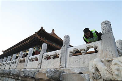 單霽翔此次主要檢查故宮最重要的三大殿區域。昨日下午6時許,所有檢查完畢后,一扇扇宮門關閉。