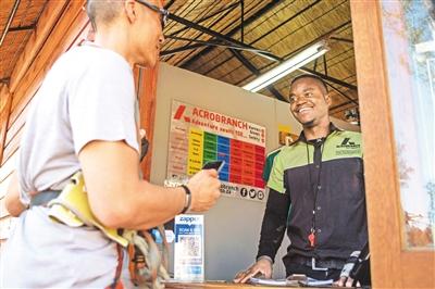 在南非約翰內斯堡,一名游客使用支付寶支付。新華社發