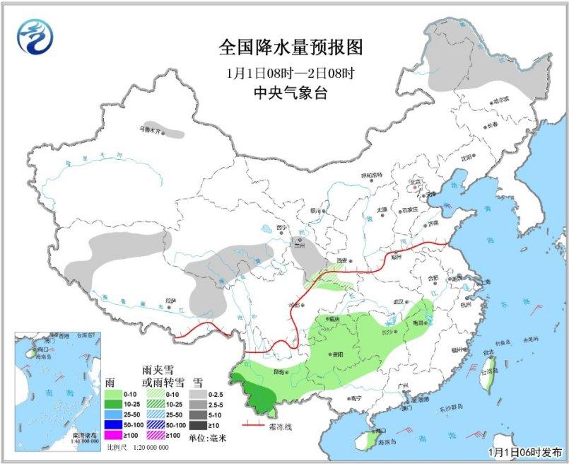 1日08時至2日08時,全國范圍降水較弱。內蒙古東北部、黑龍江北部和東部、西藏西部和東部、青海南部、甘肅東南部等地的部分地區有陣雪或小雪,局地有中雪;西南地區南部和東部、江南西部等地有小雨,云南西南部的部分地區有中雨;內蒙古東部、遼寧等地有4~6級風。南海東北部和西南部有6~8級、陣風9級東北風。